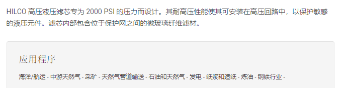 Hilliard 高压液压滤芯系列